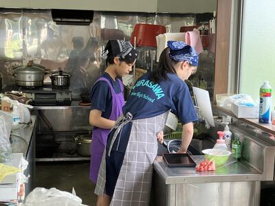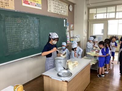 暑い日には冷たいものが好まれますが、「アイスクリームの食べ過ぎや清涼飲料水の飲み過ぎに注意!」とよく聞きます。当然、それらには想像以上の砂糖が使用されているためです。砂糖(糖分)の摂り過ぎは、虫歯や肥満につながるだけでなく、糖尿病などの病気につながるリスクが高まると言われています。また、子どもの糖分依存は、健康障害のほか、イライラしやすくなったり、集中力や学習能力が低下したりするなど、様々な影響が現れるとも言われています。配膳室前には、これらにどの程度の糖分が含まれているのかを掲示してあります。食品の味だけでなく内容についても興味をもたせたいです。(糖分と同様、油・塩についても過剰な摂取も要注意です。)