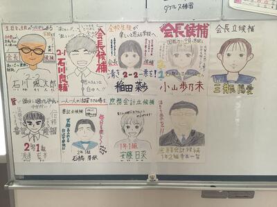 選挙準備、朝の選挙運動、昼の放送演説など、立候補者の生徒、責任者や協力者の生徒、これまでよくがんばりました。明日の立会演説会では、とくに会長選における立候補者の最後の演説が熱くなりそうです!