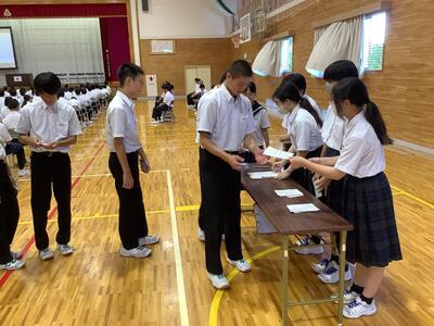 9月9日(月)の全校集会では、夏休み以降の受賞について表彰披露が行われました。文化的なことから運動まで、幅広い白中生の活躍に敬意を表します。もちろん、受賞こそならなかったものの、多くの生徒がたくさんのことにチャレンジをしているのが白中生です。2学期もたくさんのチャレンジを期待しています!(以下、表彰の内容です。)