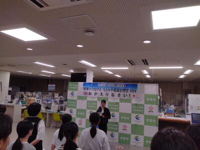 イギリスを訪問していた「もとみや英国訪問団」が帰国し、昨日、無事に本宮市に到着しました。本校から参加した3名も元気に帰ってきてくれました。代表で挨拶した渡辺さんからは、ダヴェナント・スクールの学生たちとの交流やクリケットの体験が特に印象に残っているという話がありました。異国での様々な体験はとても貴重な経験になったようです。3人ともやや疲れた様子はありましたが、有意義な時間を過ごし、大いに見聞を広げることができたようです。日曜日には授業参観があります。ゆっくり休んで、また元気に登校してほしいと思います。今回体験したことや感じたことをぜひこれからに生かしてほしいと思います。