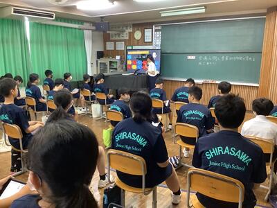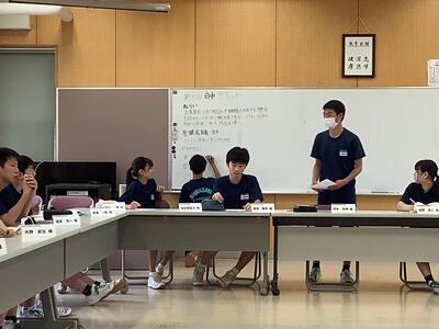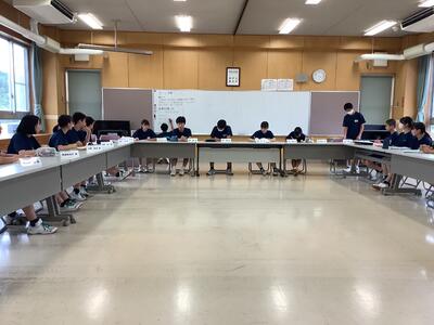 本日の放課後は、1学期最後の専門委員会があり、委員会終了後は、3回目となる「白中サミット」が行われました。生徒会役員と各委員会の委員長が集まり、今後のより良い白沢中学校に向けて話し合いが行われました。サミットのテーマである「一人一人が輝く学校」の実現のため、これまで以上に、代表生徒から活発な意見が出されました。2学期以降も、更に活発な活動になることを期待したいと思います。
