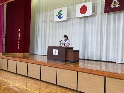 『あいさつがすばらしいです。元気よく、大きな声であいさつする姿。立ち止まってあいさつする生徒。教室に入るときに「失礼します。」と言う生徒。後ろの席の人にプリントを渡すときに「お願いします。」と言う生徒。もちろん、授業中の発表のようすも意欲的で、このような生徒がいる学校は、とても温かな雰囲気であることがわかります。』
