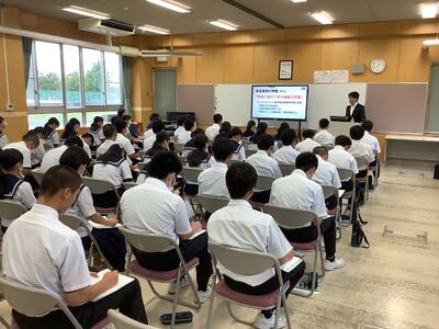 今日は、午後から2,3年生と保護者を対象とした高校説明会を開催しました。(2年生は自分の教室でZOOMを使った参加となりました。)