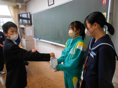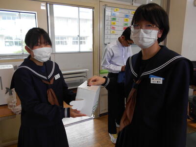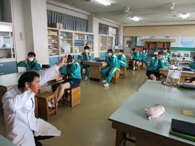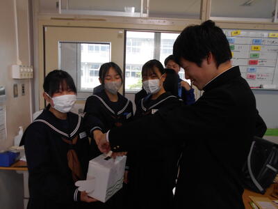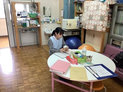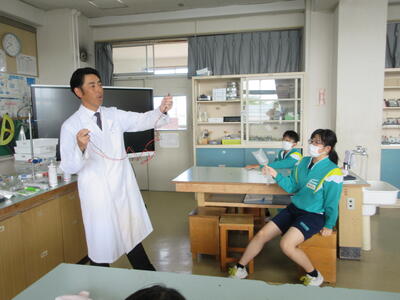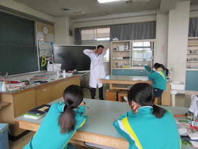 菅野先生は本校の卒業生であり、将来は養護教諭になることを目指して、現在、大学で勉強しています。実習期間では、養護教諭の業務を体験したり保健教育について実践したりします。短い期間ではありますが、生徒と関わりながら将来の希望に近づいてほしいと思います。