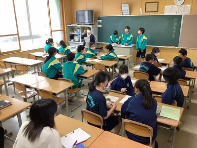 放課後には部活動編成会を行いました。各部活動ごとに目標や活動内容について確認をしました。自己紹介を行うと大きな拍手が沸き起こるなど、各部とも、とても温かな雰囲気で会が行われていると感じました。