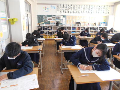 1・2年生は定期テストの2日目でした。テストを終えて、ほっとしている生徒たちの表情が印象的でした。