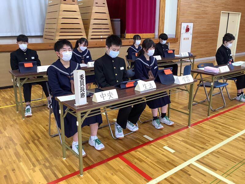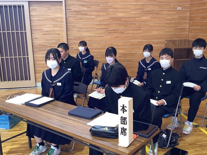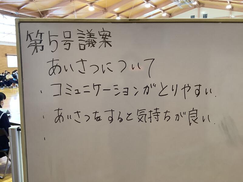 実際の総会では1年間の生徒会活動の反省や意見交換を2年生が中心となりしっかりとできていて、すばらしく感じました。何より、この日のために担当の清水田教諭を中心に、議事に対する答弁の確認や議長の選出など、総会とはどんな意識で行うのかをしっかりと生徒たちに落とし込む時間をとっていました。中学生にとって、自分たちだけで議事を進行し、それについて議論を深めていくことは非常に大変です。それができていたことに感動しました。「よりよい白中を目指して」という議論の場面でも前向きな意見が飛び交い、とても有意義な時間になっていました。