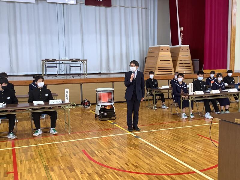 「白沢中学校に赴任して、生徒会活動がすばらしく驚くことが多かったです。全校生のみなさん、中学生は土台が大切です。当然ですが土台がダメだとすぐに崩れてしまいますね。生徒会活動の土台といえば学級活動です。その学級活動を充実させることが大切です。そして今日の総会では代表の話を聞いて学級や生徒会での活動を振り返り、今後の学校生活で特に3年生は有終の美を飾れるようにしてほしいと思います。そして、1,2年生は、3年生が築いてくれたものがあったから今があります。2年生がしっかりと土台となってやりきり、1年生は2年生の活動をしっかりと見て成長してほしいと思います。それでは、この生徒総会を有意義な時間にしてください。」