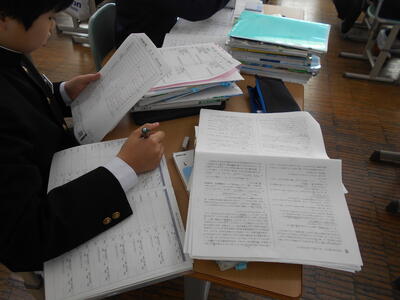 今週もあっという間に金曜日。3年生は学習、面接練習と慌ただしい毎日を過ごしています。職員も、高校への出願や書類作成と遅くまで進路業務をすすめています。間違いがあってはならない業務なので、二重三重の確認体制を取りながら対応しています。昨日、県教育委員会から県立高校の出願状況が発表になりました。選抜試験ですから、当然不合格もでてきます。最後まで粘り強く、自分のよさを発揮できる準備をすすめていくことが大切ですね。