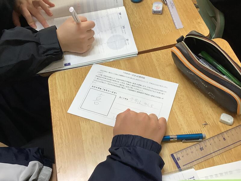 生徒会本部役員は、明日の「今年の漢字一文字」の選定作業を行っていました。どうやら投票結果が出たようです。明日の終業式で、本部役員が発表予定です。皆さんの、今年1年間の漢字はなんでしょう?