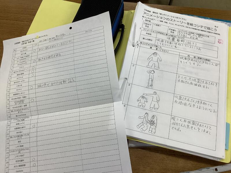 今日美術の授業では、一人ひとりが作成したアニメーションの鑑賞とその感想を書く活動をしていました。さすが3年生。アニメーションのクオリティーが高い。動画でお見せできないことが残念です。動画編集も、すらすらできています。美術の授業も20年前とはまったく違いますね。