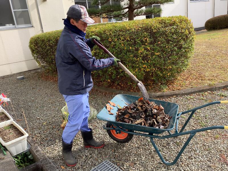秋から冬にかけて大変なのが落ち葉の処理です。放っておくと大変で、実際に校舎まわりの用水路に、大量の枯れ葉がたまっていました。今日、気温1℃の中、藤井さんが校舎まわりの用水路をきれいにしてくれました。作業箇所は非常に多いですので大変です。普段生徒達と共に、目につくところを中心にきれいにしていますが、こうやって裏できれいに整えているから気持ちよく学校生活が送れています。教師以外にも、調理員、用務員など、学校はいろいろな人が関わって安全性が保たれていることを忘れてはいけませんね。