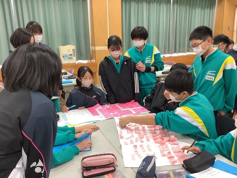 昼休みの時間、生徒会役員が集まり、集めた漢字の集計作業を行いました。たくさんの漢字とその理由が集まりました。理由を読んでみると、なるほどな、という理由がたくさんありました。各々、学校行事や部活動、そして勉強に対して思い入れがあり、当然ながら重みも違います。一人ひとりに焦点をあてて、理由もたくさん紹介したいなと思います。そして、その漢字を受けて、来年はどんな目標に向かって生活をしていきたいかを考えるきっかけにしたいですね。