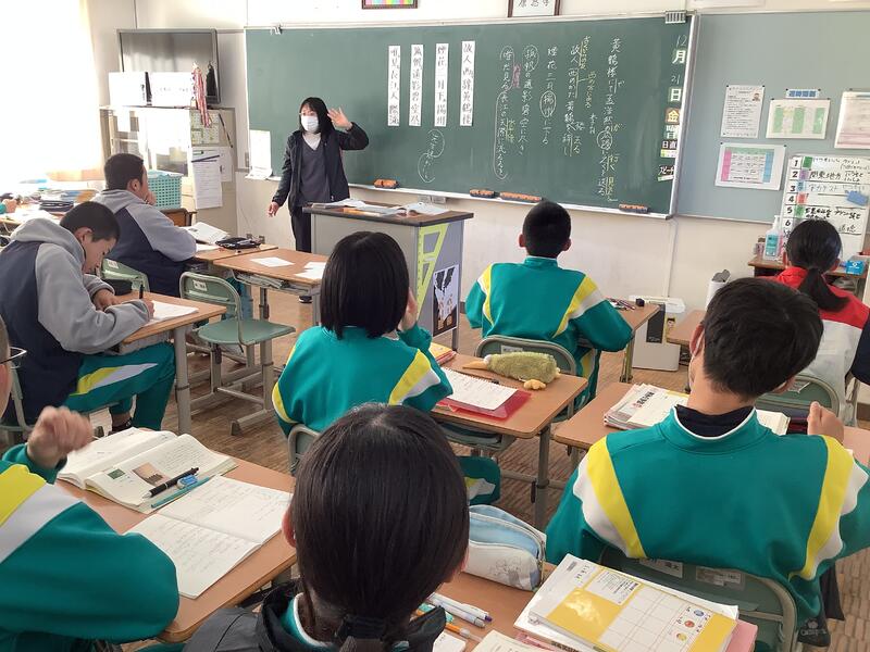 2年生の国語は漢文です。レ点、一・二点などの用法、倒置法、押韻など漢文を読む上で大切なところを学習し、意味の深さや美しさを実感させていました。英語と文法が似ている点もおさえながら、授業を展開していました。