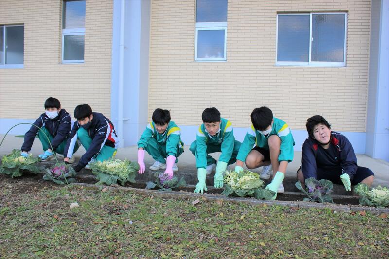 昨日、根本さんからいただいたハボタンを生徒達と一緒に体育館前に植えました。きれいに植えることができ、これからまだまだ楽しめそうです。立派なハボタンをありがとうございます。