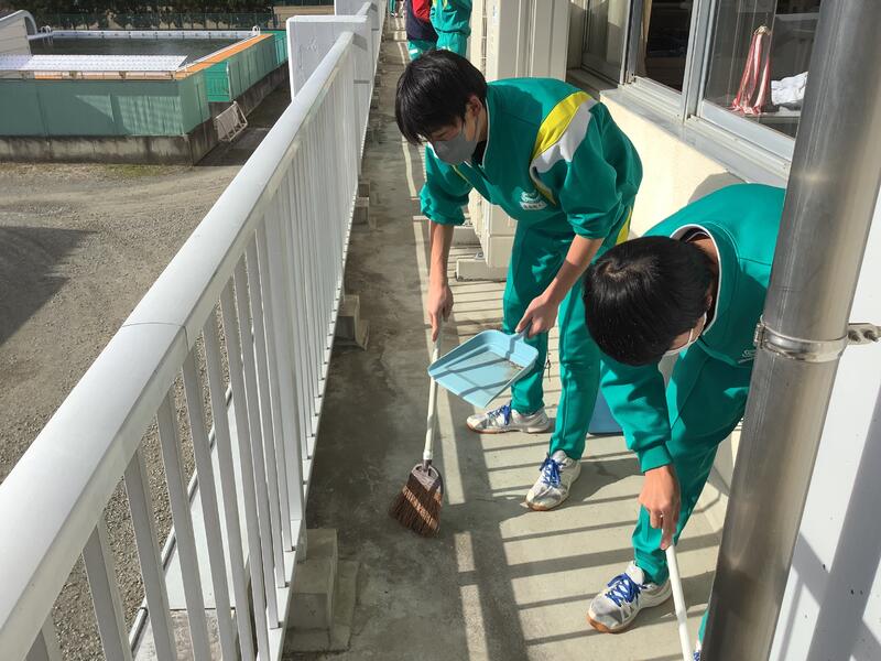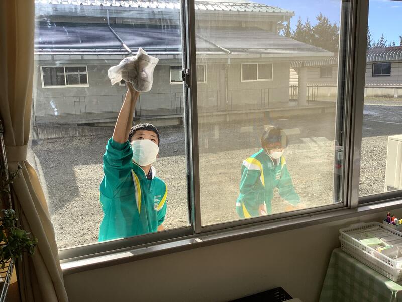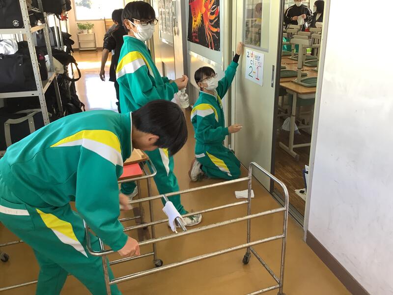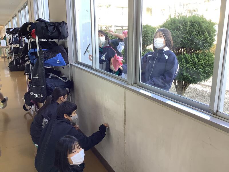 学期末30分間の清掃活動です。15分教室、15分トイレ、特別教室などを行いました。窓ふきは、環境委員会が中心となって行いました。一生懸命に活動する生徒が多く、楽しくやっていました。