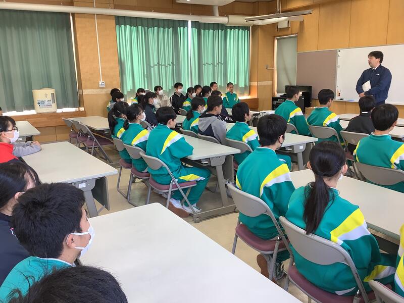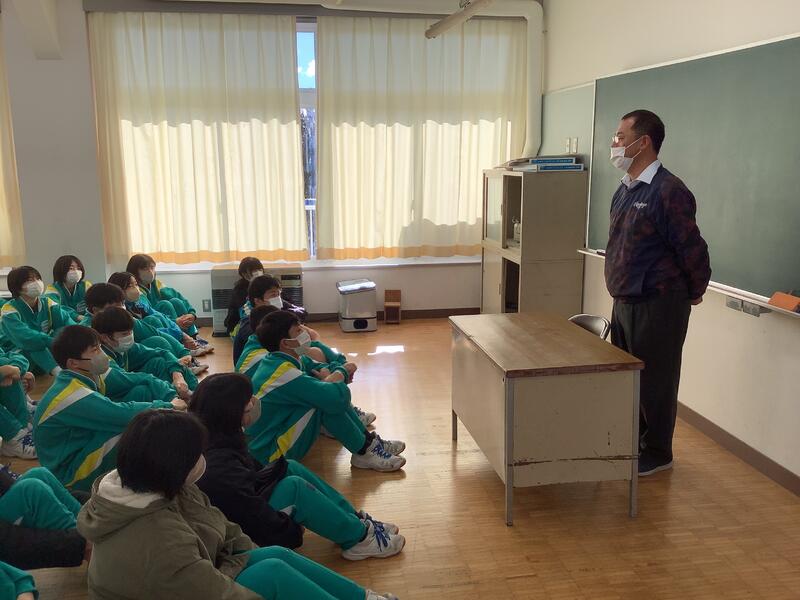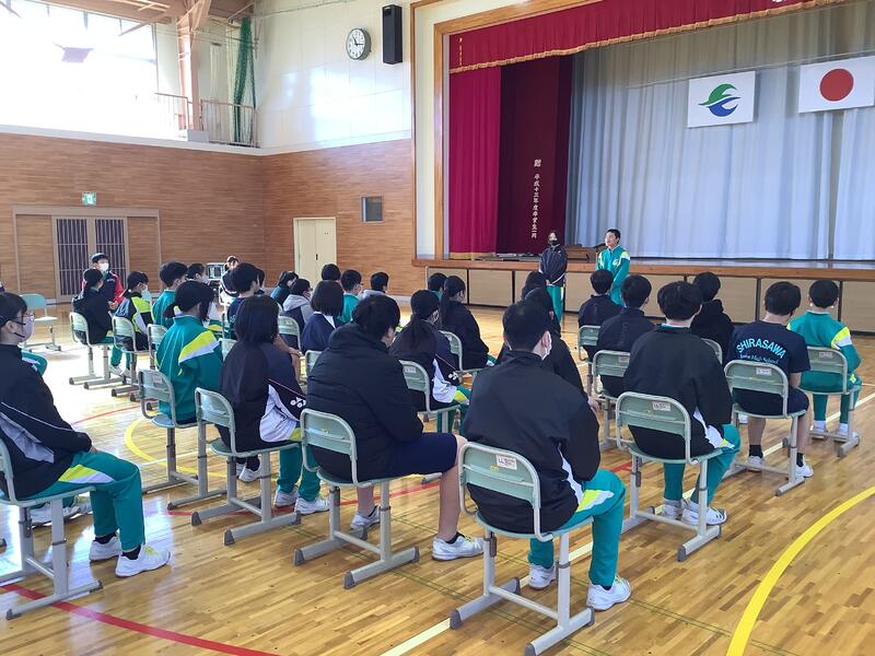清掃後は、各学年で、今学期を振り返る時間をしっかりとっていました。学年経営計画にのっとり、どうだったかを学年主任が話し、生活や学習について担当から伝えていました。生徒からの振り返りの発表もあり、教師と生徒相互から発信する機会をもち、前向きな気持ちになる集会を行っていました。