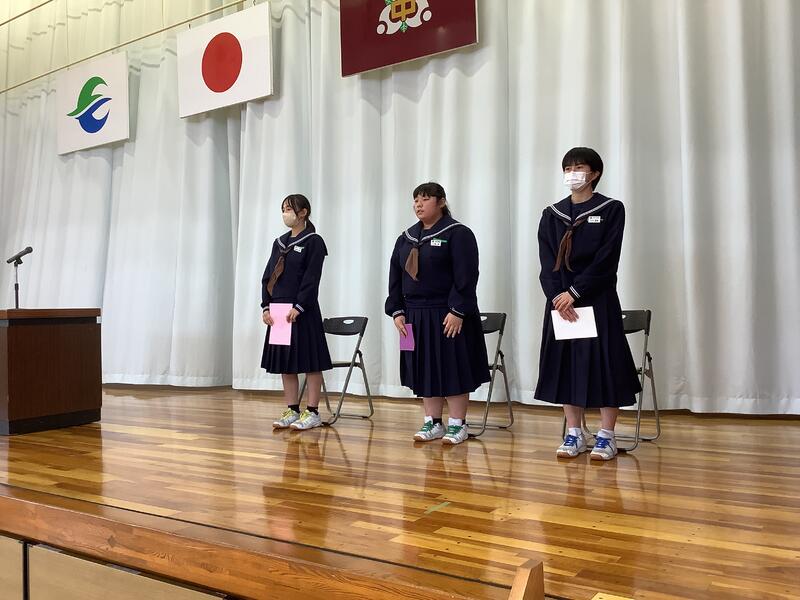 学年発表では、各学年の代表が2学期を振り返っての文章を読み上げました。堂々としっかりと前を向いてすばらしい発表でした。