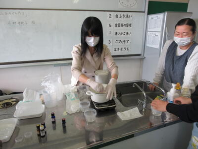 最後には「ライブラ香りの学校 福島校」の小林様に講師としてご参加いただき、保湿クリームと石けん作りを行いました。