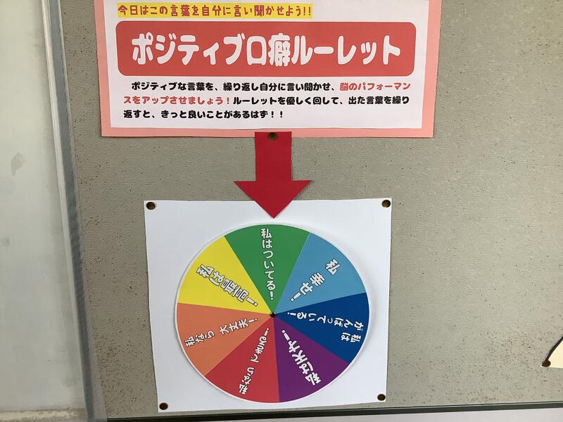 実際にポジティブルーレットを回してみました。「私はついてる!」でストップ。明日は、朝起きた瞬間から、「私はついてる」を意識的に使って、授業や通常業務に向き合って仕事をしてみようと思います!