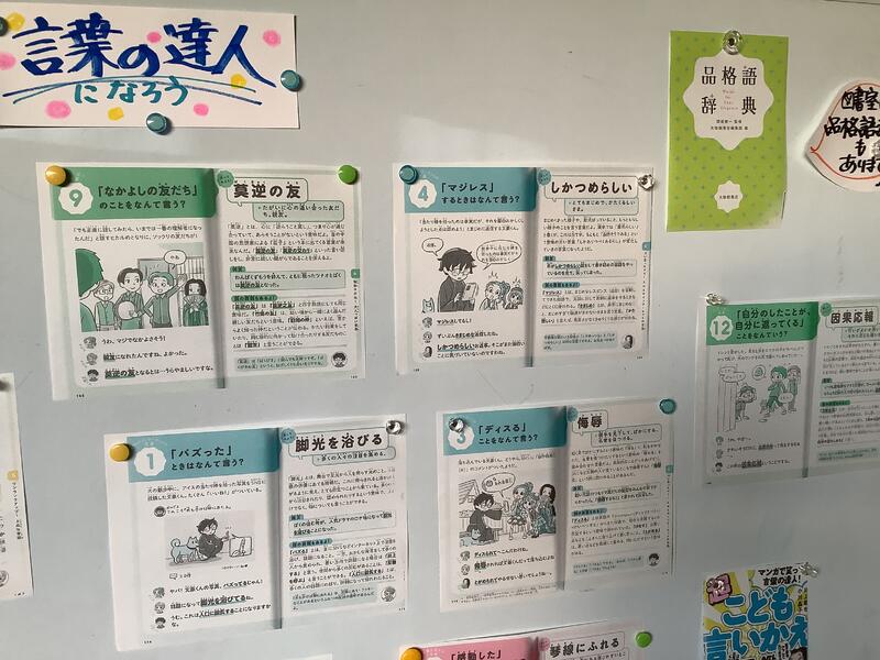 昇降口に言葉についての掲示がしてあります。図書室には、品格語辞典や、こども言い換え図鑑など、最近の言葉の意味や言い換えについての本があります。今、中学生や高校生が使っている言葉、例えば「バズった」。これは、「脚光を浴びる」「注目を集める」の意味です。時代と共に言葉は変化しているので、我々大人も知っておく必要はありそうですね。若者の言葉は、時代を反映しており、なるほど、と感じることもあります。その言葉を我々大人は、時と場に応じて使い分けしていけるように指導していきたいものです。