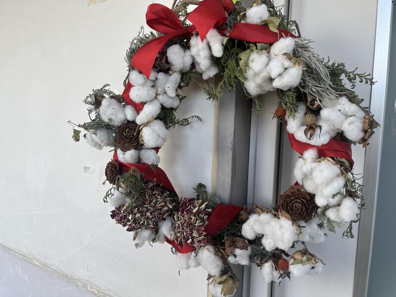 校長室前のリースも、守谷さんが冬のデザインにしてくれました。これから雪の季節がやってきます。タイヤ交換も今年は早いほうがよいかもしれませんね。