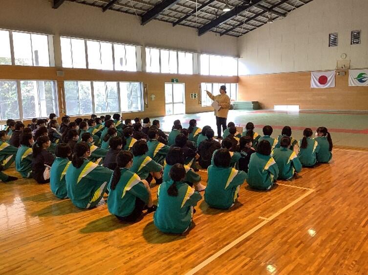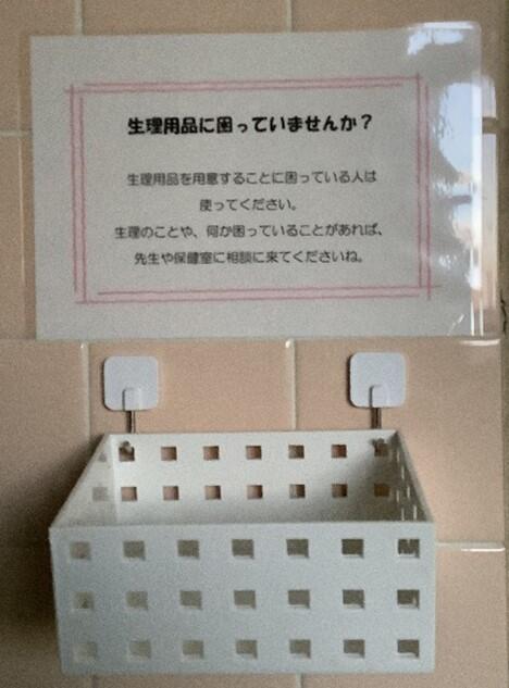 昼休みに、寿雅子先生が「トイレへの生理用品の設置」について説明をしました。まず始めに、女性が一生に経験する生理の回数について説明し、これから長い間生理と付き合っていかなければならないことを確認しました。また、月経は赤ちゃんを産むための準備であり、自分の体や他人の体を大切にできる人になってほしいという話をしました。用品の利用については、次のように話しました。「家庭で生理用品を用意できない人や、急に生理が来てしまい困っている人のために、白沢中学校でもトイレに生理用品を設置することになりました。本宮市の税金で準備しています。トイレに生理用品が設置されますが、今までと同じで「自分で使うものは自分で用意する」が基本です。本当に必要な人、困っている人が使えるように、ルールを守って利用してほしいです。困ったことや不安なことがあれば、学年の先生や養護教諭に相談に来てください。」と丁寧に説明しました。生徒達は真剣な表情で話を聴き、理解を示していました。