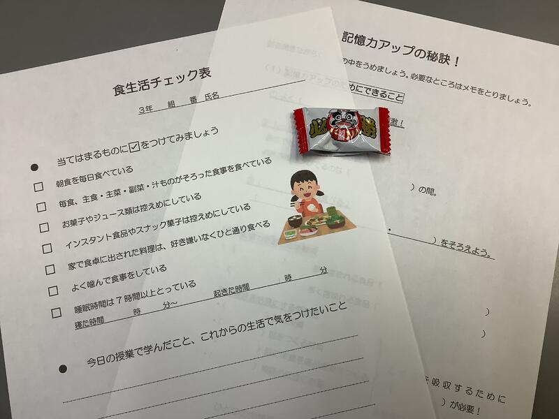 6時限目には、本校栄養士の深谷さんから、3年生に「受験期の食事」について講話がありました。記憶力アップについて、科学的根拠に基づいて話をしました。栄養がないと記憶に影響が出ます。栄養は食事からしかとれません。学習と食は、セットで考えなくてはいけませんね。我々大人も参考になる内容でした。
