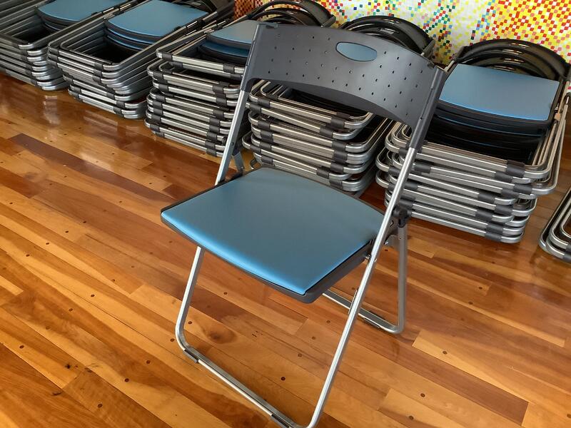 本日、新たにパイプ椅子が納品されました。古くなった椅子が多かったので、これからどんどん活躍してくれそうです。座り心地抜群です。