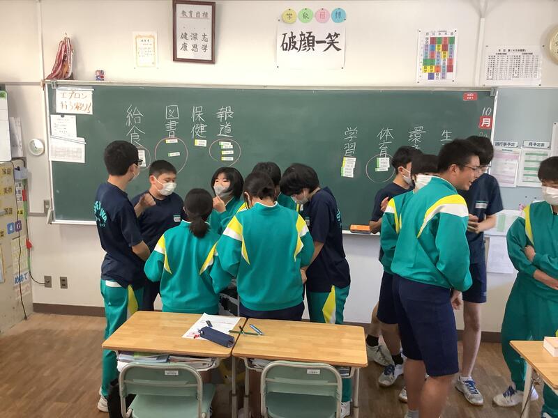後期専門員会がありました。今日から、委員長は2年生。つまり2年生が学校の中心となったということです。立候補した委員長が委員会を進めていました。はじめから上手くいくはずはありません。ただ、2学年としての色をだしてほしいです。今後の活躍が楽しみです。