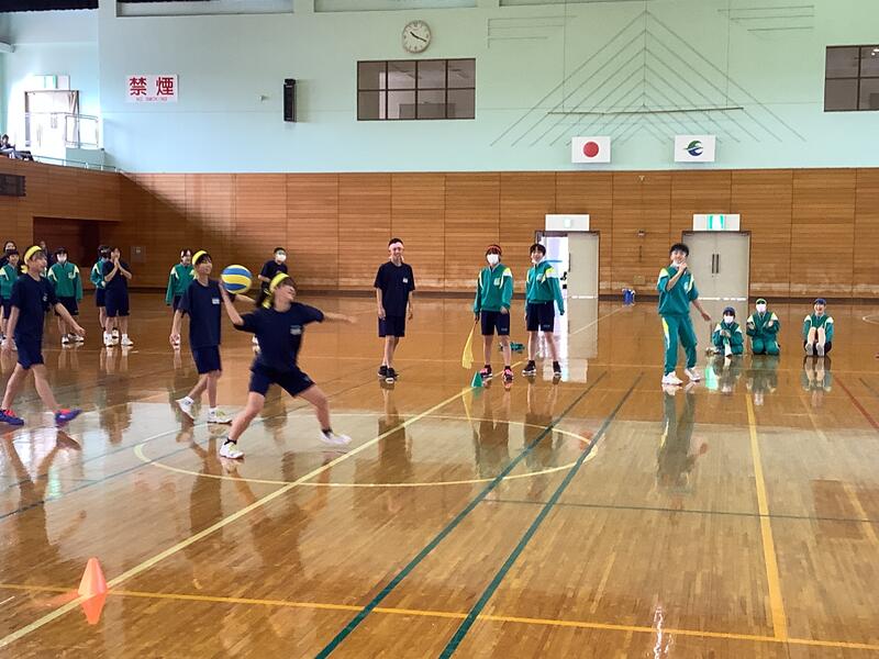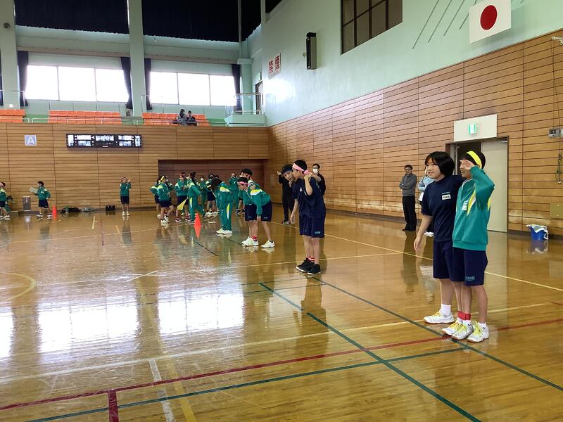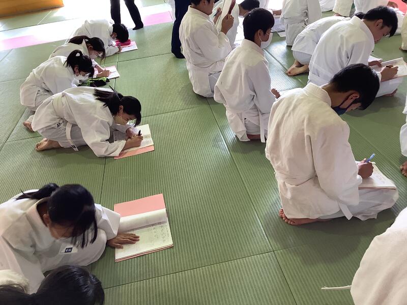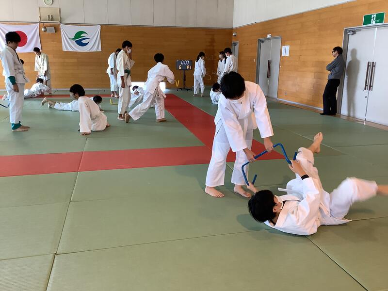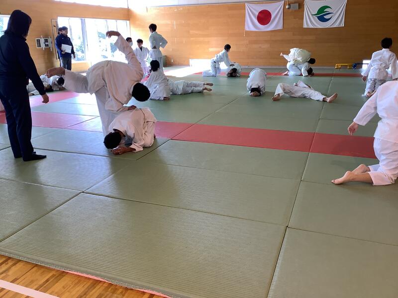 今日は、3年生の授業を参観。正しい受け身の方法を2人組で4パターン行っていました。受け身の形を覚えるのに、ミニハードルを持たせて、弱い力でも回転できるように工夫していました。生徒たちは、形を覚えようとしっかりと取り組んでいました。さすが武道です。礼儀作法も大事で、正座してあいさつにはじまり、あいさつに終わっていました。