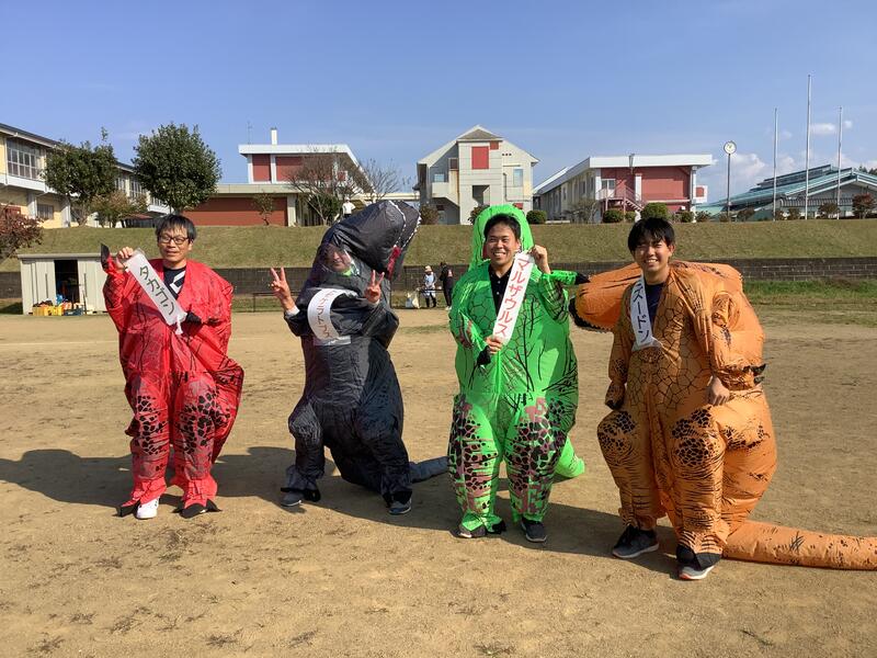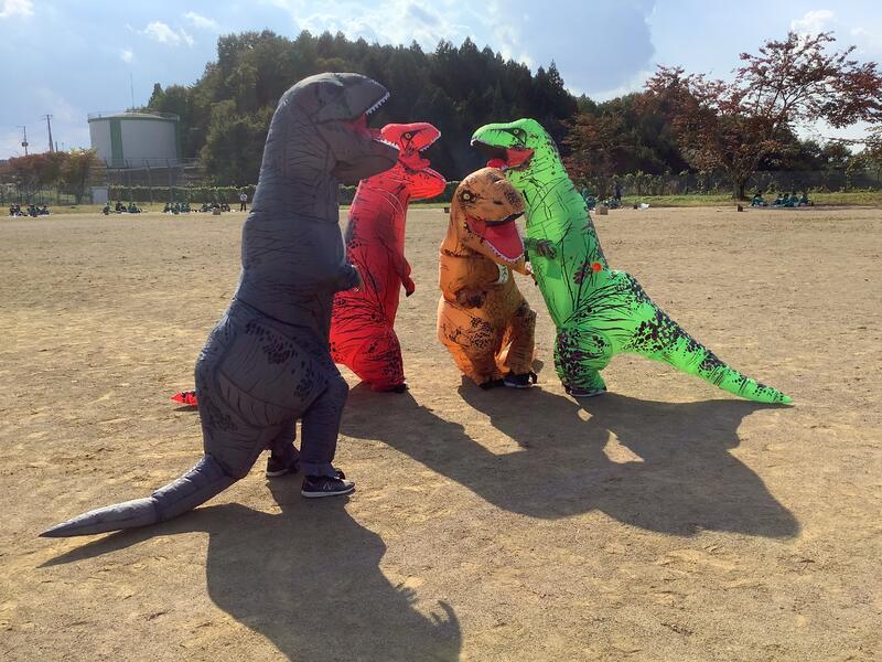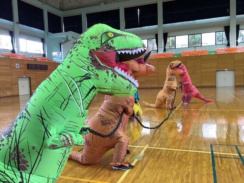 恐竜たちが、綱引きのデモストレーションをしてくれました。大盛り上がりです。