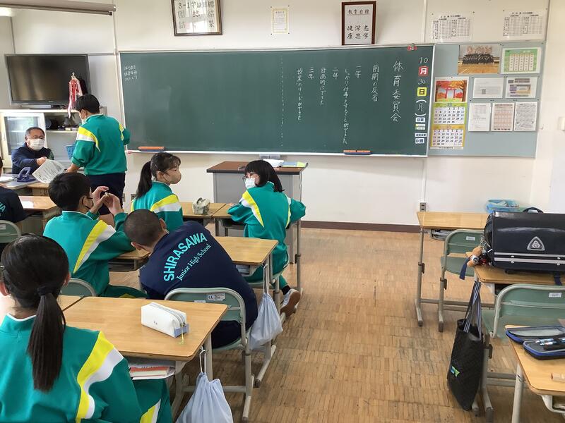 各学級では、白中祭の感想・反省や、後期の学級役員決めなどを行っていました。積極的に役員になろうと立候補する生徒も多く、感心しています。教師としてできることは、生徒達のもっている本来のよさを引き出すことです。生徒が何かをやろうとした瞬間のタイミングを見逃さないで、声かけをして背中を押すことが重要です。行事のときや係を決めるとき、我々教師はよく生徒を見なければいけません。早すぎても遅すぎてもダメですから。