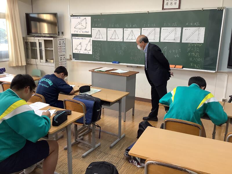 11月半ばにある数学検定対策の補習の様子です。毎週月曜日に来校する三津間アドバイザーに丁寧にやっていただいています。今日は、三平方の定理でした。3学期に学習する内容ですが、一生懸命に問題に向き合っていました。