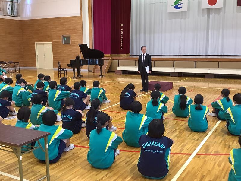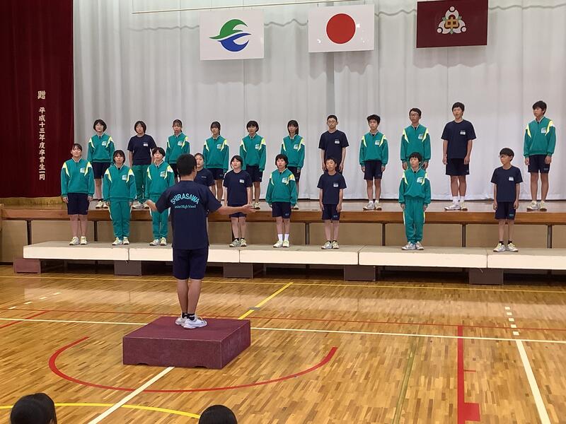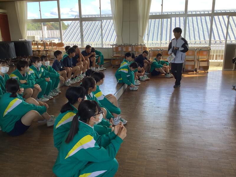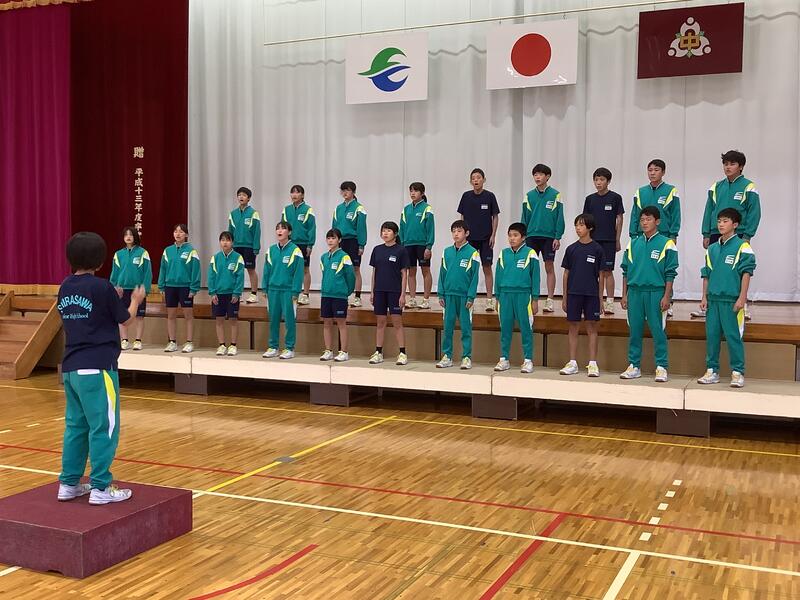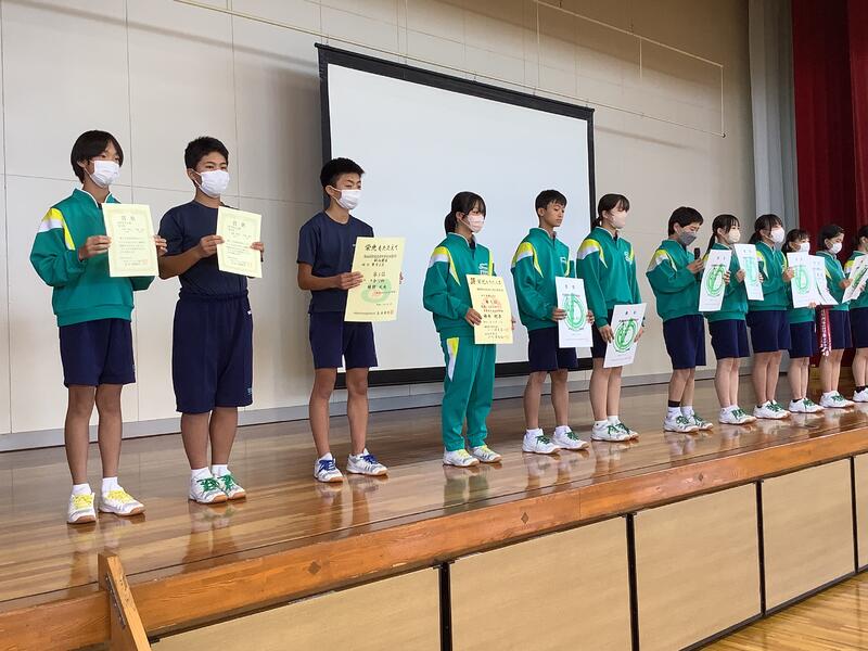 午後には、各種大会の表彰披露、野外活動の事前打ち合わせを体育館で行いました。2年生が中心でしたが、しっかりと大会での反省、次の目標を堂々と発表していました。1,2年生の発表する姿を見ていて、話す内容も含め、成長を感じました。