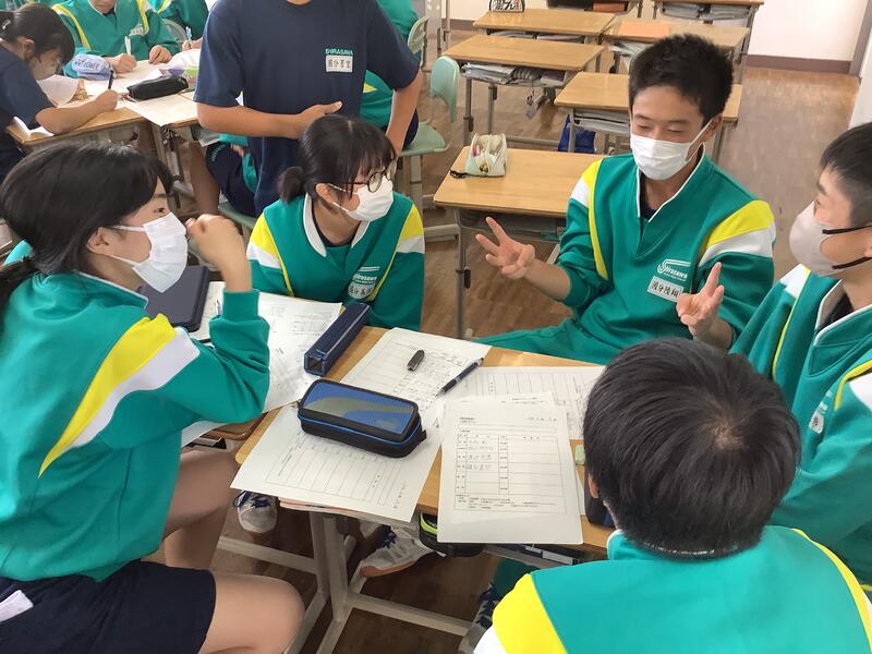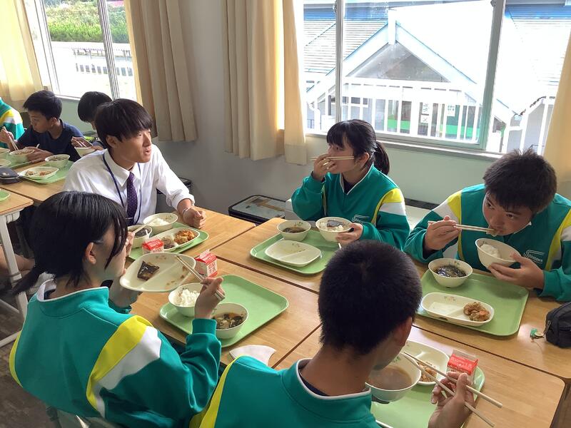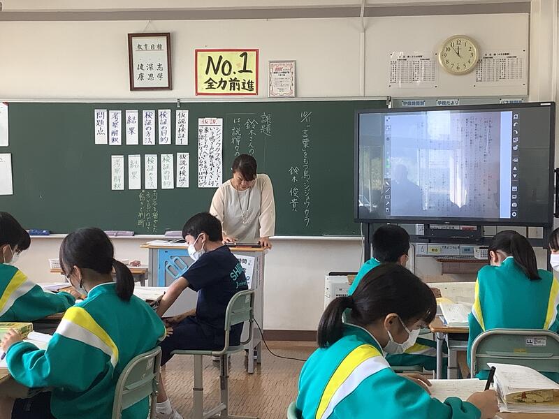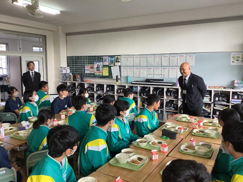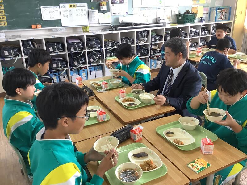 本日は、高校の先生が中学校の授業研究に来校しました。1年1組の国語、2年1組の道徳、4組の授業を参観し、3年生と給食を一緒に食べて、中学校教育の実態を学んでいきました。私たちも小学校や保育園、幼稚園でどのような教育を受けて成長してきたかを学んで、今の教育に生かしているところです。常に学ぶ姿勢をもつことが重要です。生徒達は、高校の先生に見られながらも、いつも通りの真剣なまなざしで学習に取り組んでいました。授業を見せた職員は、今日のために遅くまで授業の準備をしていました。この取り組みで、生徒達の成長につながっていくことを願っています。