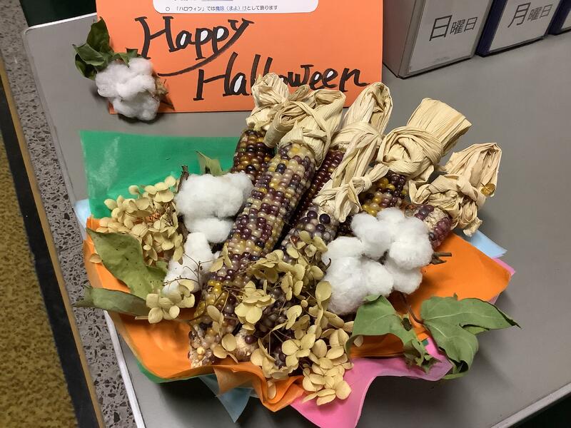 10月といえば、ハロウィンでした。昇降口にきれいに飾ってあります。