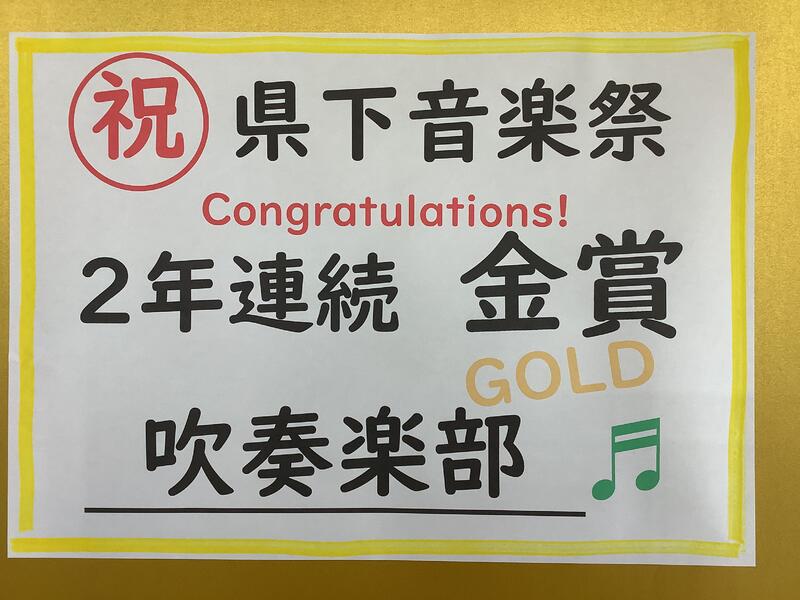 審査の結果、見事金賞を受賞しました。吹奏楽部の皆さん、素晴らしい演奏をありがとうございました。