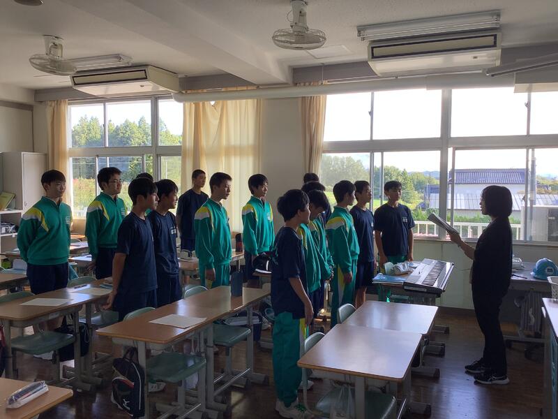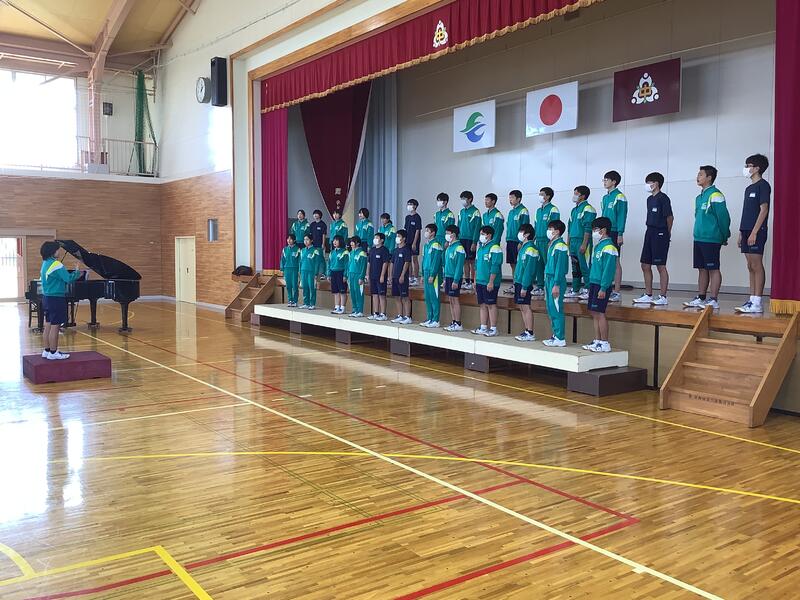 1年生の合唱リハーサルの様子です。初めての合唱コンクールですので、まずはしっかりとやりきってほしいという思いで聴きました。不安な部分はあったと思いますが、すばらしい合唱になっていました。音楽担当の遠藤教諭からは、「競うのではなく、すばらしい合唱になるように声を響かせる、みんなに聴かせよう」というアドバスがありました。リハーサル後は、各担任が隣の学級に対し講評を述べました。その中で、「歌詞の意味を理解し、想像し思いを込める」という言葉が印象的でした。