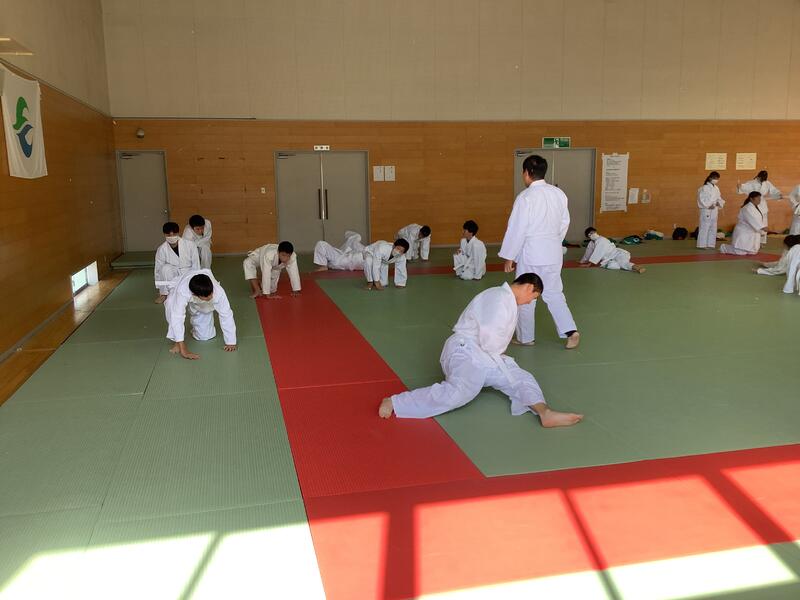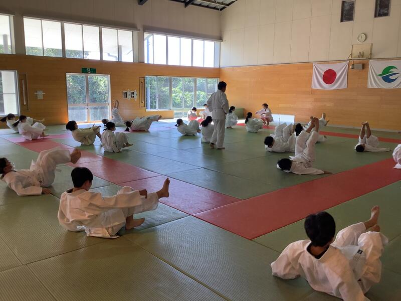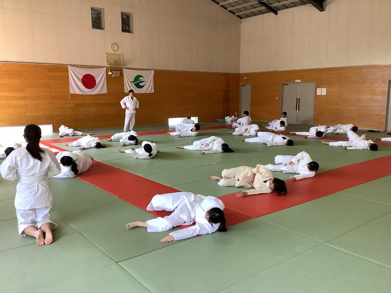 柔道では、受け身の練習に時間をかけていました。畳からは心地のよい音が響いており、全員受け身の練習を行っていました。生徒達は、一生懸命に丸山内教諭の動きを見て、学んでいました。運動をしていて、転んでしまうときは必ずあります。そんなとき、とっさに受け身がとれるとケガ防止にもなります。スポーツをする上で、けがをしない動きを身につけることは、一番始めに指導することです。大変勉強になる授業です。