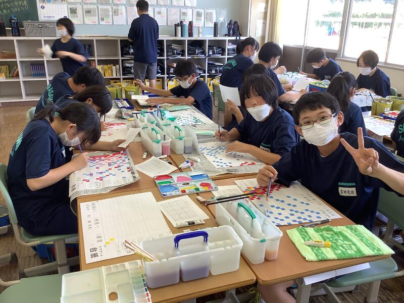 さて、本日の午後の総合の時間は、白中祭「テーマアート」作成でした。各学級のテーマアート担当の生徒が説明し、作業を行いました。初めての試みで、戸惑いはありましたが、みんなで協力して楽しく色塗り作業を頑張っていました。毎年ですが、授業以外の活動中に、意外な一面を発見することがあります。生徒同士、お互いの見方が交わる瞬間に遭遇できるといいなと思います。コロナ流行後、みんなで一つ方向性を見て活動することの楽しさを味わわせることができなかったので、今後もできるだけ、たくさん経験をさせていきたいです。