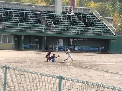 10月1日(日)、県北地区中学校新人野球大会が白沢グリーンパーク野球場で行われました。天候も心配されましたが、本校の試合中は晴れ間がのぞく晴天の中で行うことができました。本校の選手たちは攻守に素晴らしいプレーを見せ、福島第三中学校を相手に、7対2で見事に勝利することができました。新人戦からまだ数日ですが、試合経験からの着実な成長を感じることができました。