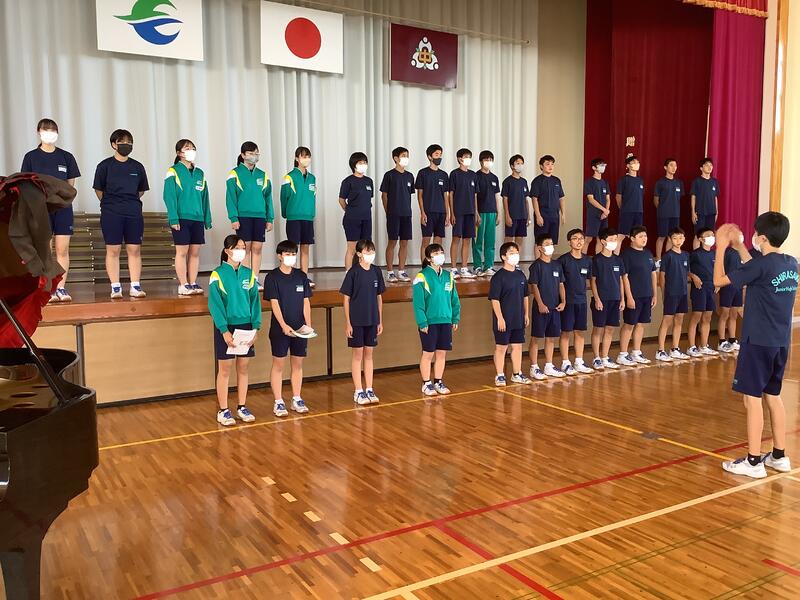 放課後の合唱練習もリーダーを中心に練習していました。時間を決めて指示を出し練習に取り組む姿に感心させられました。この積み重ねで、チームワークがはぐくまれていくことを期待したいです。
