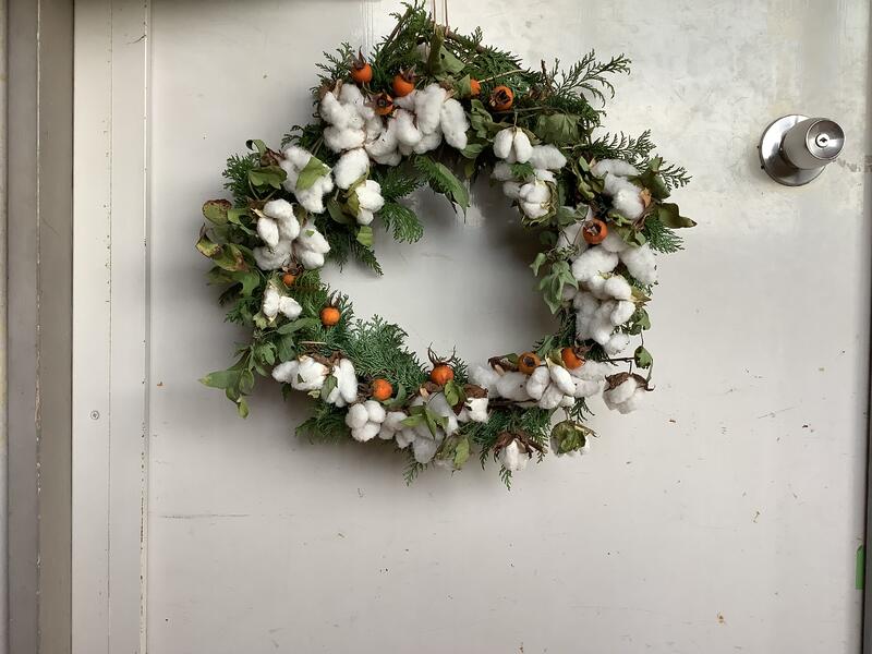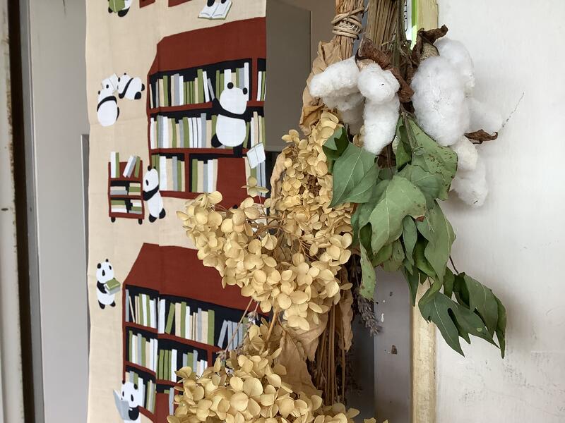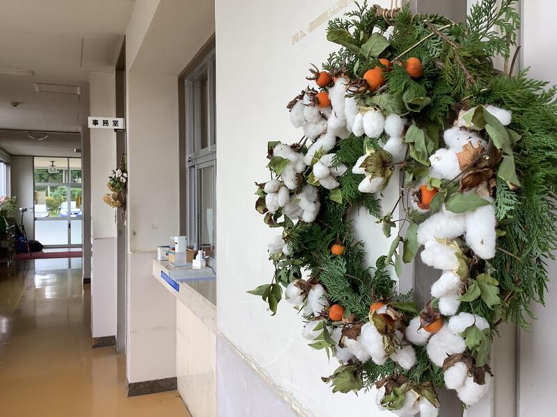 リースのオレンジの実は、バラの実です。そして、読書の秋。 図書室をどんどん利用しようね。