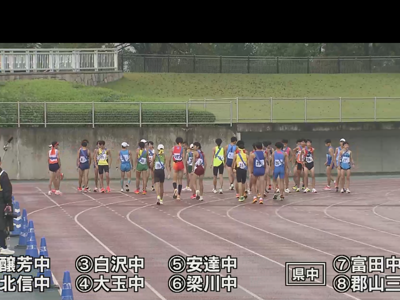 県中体連駅伝大会が行われました。天候が優れない中でのスタートでしたが、よい調整をして走ることができたようです。本校の結果は、19位でした。各地区を勝ち抜いてきた生徒を相手に、ひるむこと無く走りきることができまいた。そして、何と部長の猪狩礼央さんが2区を走り、区間賞を獲得しました。応援してくれている人、今まで関わってくれた人、そして練習してきた仲間達の思いを胸に快走してくれたと思います。ライブ放送を職員室で見ながら、職員室でも応援し3年生も給食中に見ながら応援していました。かっこ良い走りを見せてくれた6人、そのサポートをしてくれた部員に拍手おくりたいと思います。