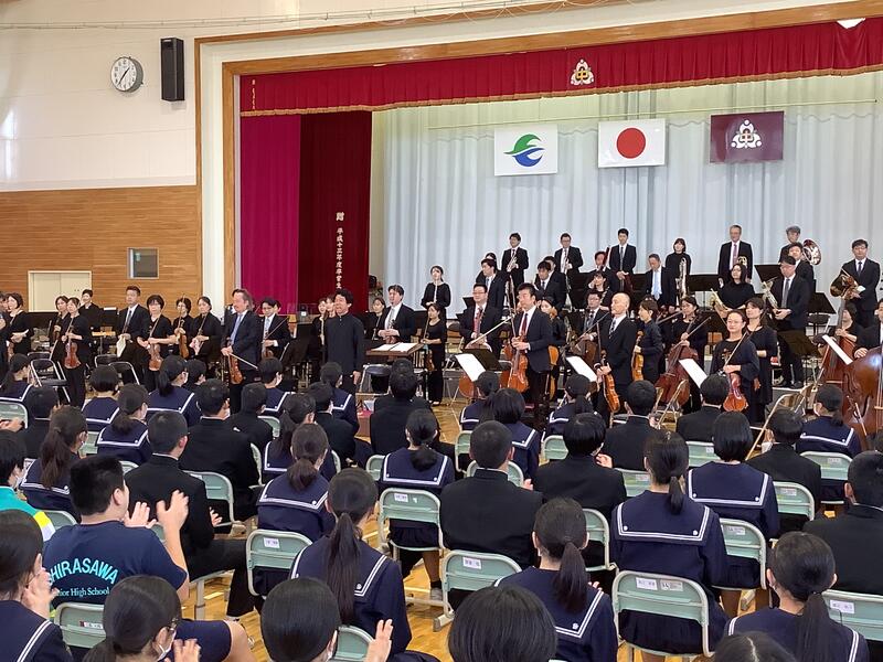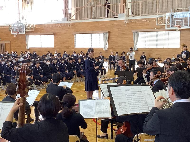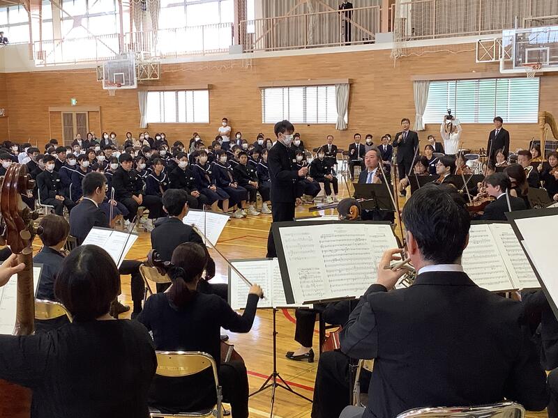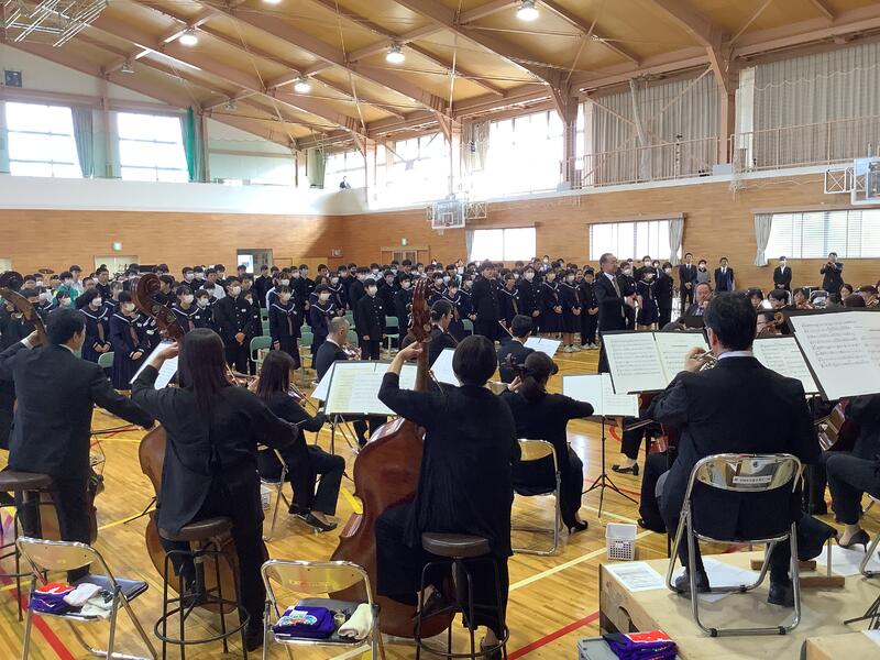 本日は、楽しみにしていた「山形交響楽団オーケストラ公演」を本校体育館で実施しました。圧巻の演奏、感動の演出ですばらしい時間を過ごすことができました。こんなにもすばらしい演奏を聴くことができる教職員、生徒達は幸せだと感じています。そして、貴重な空間を演出してくれた山形交響楽団の方々には感謝しています。