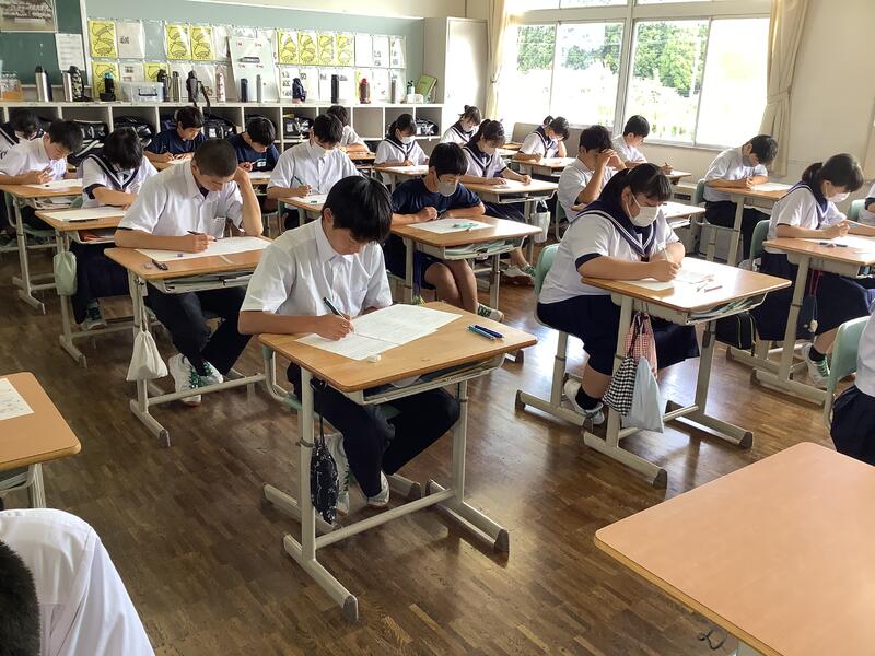 3連休明けの学校です。暑さに負けず今日もみんな元気に生活できていました。我々教職員も、負けずに教育活動を実践することができました。授業は、テスト返却の時間がが多く、嬉しい声、悔しい声が廊下に聞こえてきていました。大事なのは、返却された答案用紙をもとに、自分のできなかった部分を理解して、今日から復習を頑張ることだと思います。前向きに学習に取り組んでいくことを期待したいです。