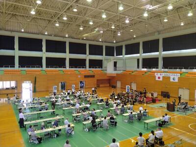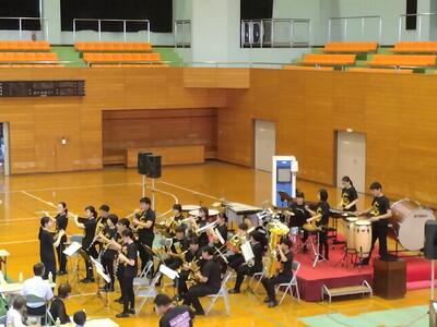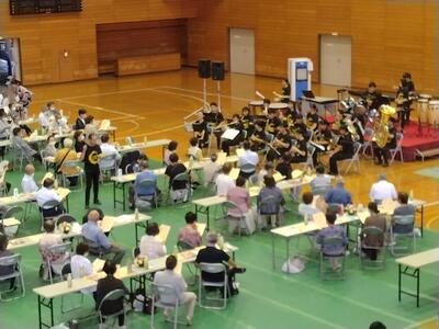 9月18日(月)、吹奏楽部が白沢・糠沢合同敬老会で演奏を行いました。「マツケンサンバ」や「雪国」、「天城越え」なども盛り込み、参加したみなさんに楽しんでもらえるようなプログラムになっていました。遠藤久典先生の合図に合わせ、聞いているみなさんが曲に合わせて手拍子をとるなど、会場が一つになって大変盛り上がりました。また、今回は指揮者として矢吹真友子先生、演奏には佐久間千恵先生も出演しました。演奏後、参加したみなさんからは、盛大な拍手がおくられていました。ご協力いただいた保護者のみなさま、ありがとうございました。