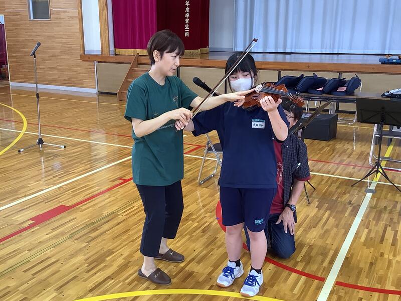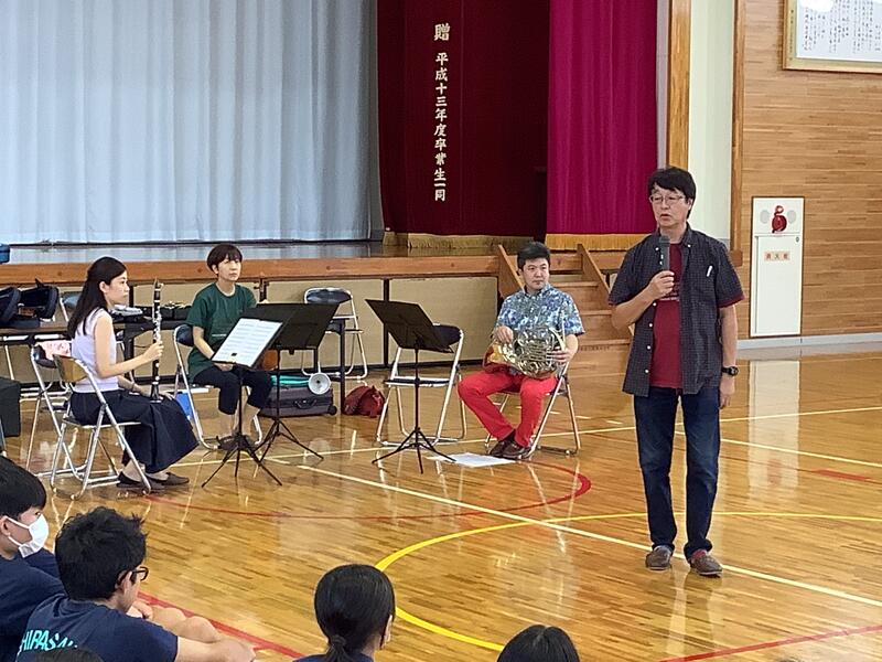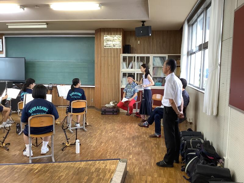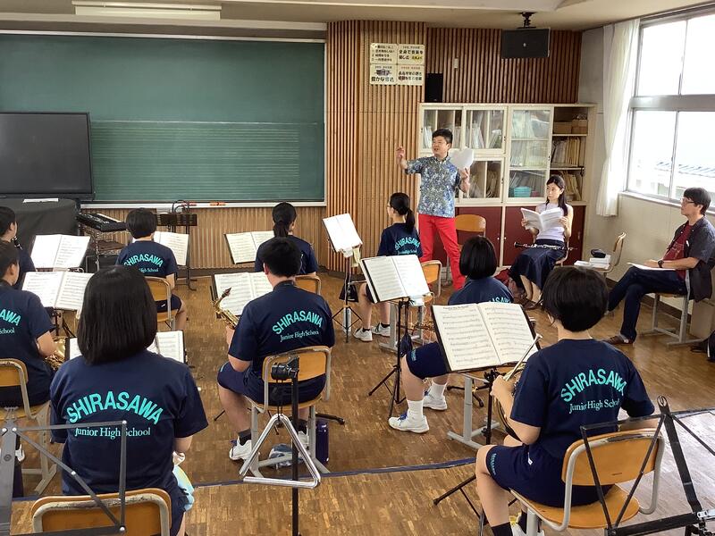 そしてワークショップには続きがあり、吹奏楽部との合同練習もしていただきました。1時間程度の練習でしたが、時間を忘れるほど充実した時間となりました。生徒達の演奏がよくなってく様を肌で感じることができました。このような機会を与えてくださった山形交響楽団の皆様には感謝しております。
