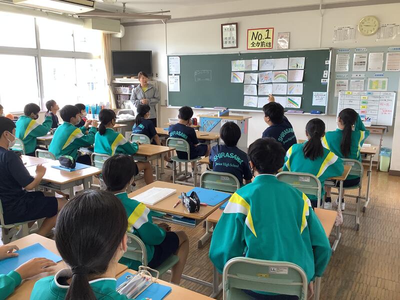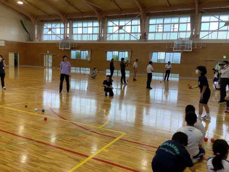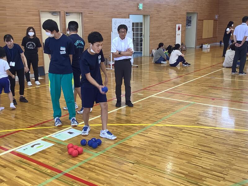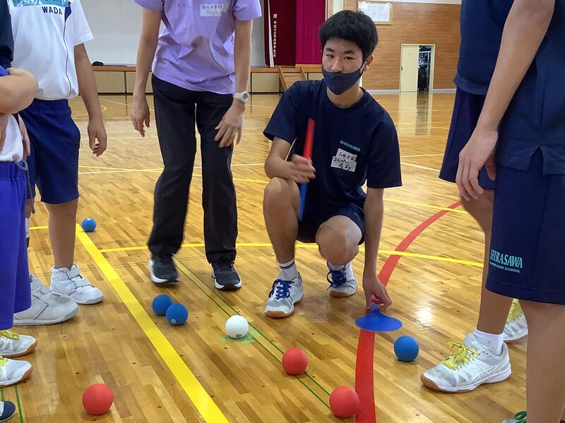 また本日は、白沢中学区の小学生が中学校に来校し、「ドッヂビー」と「ボッチャ」で交流学習を行いました。司会進行を3年生が行い、楽しい交流を行うことができました。中学生は、小学生が相手なので、自分がやらなくてはいけないという責任感で行動していました。活動する中で、ことばを選んだり、行動で示したりしていました。この活動を通して、気持ちを伝えるなど、交流することの大切さを改めて実感することができたのではないかと思います。すばらしい時間でした。